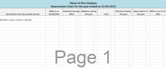 Asset (Select from drop down menu) WDV as on 01/04/2014 Retained Earnings effect Additions during the year Total Deletions During The year Depreciation for the year WDV as on 31-03-2015