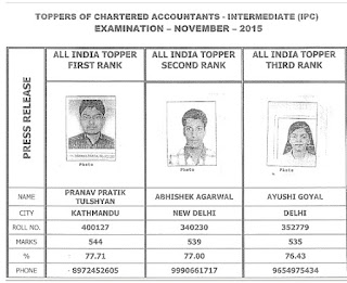 The Institute of Chartered Accountants of India will release official press note about CA IPCC pass percentage Nov 2015 and Toppers / Merit list details. The press note contains the following details i:e No. of Candidates appeared, No. of Candidates Passed and Pass Percentage of Group – 1, Group – 2 and both Groups.