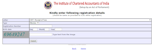 2. Select your registration letter ( CPT, IPCC, Articleship or Final etc)